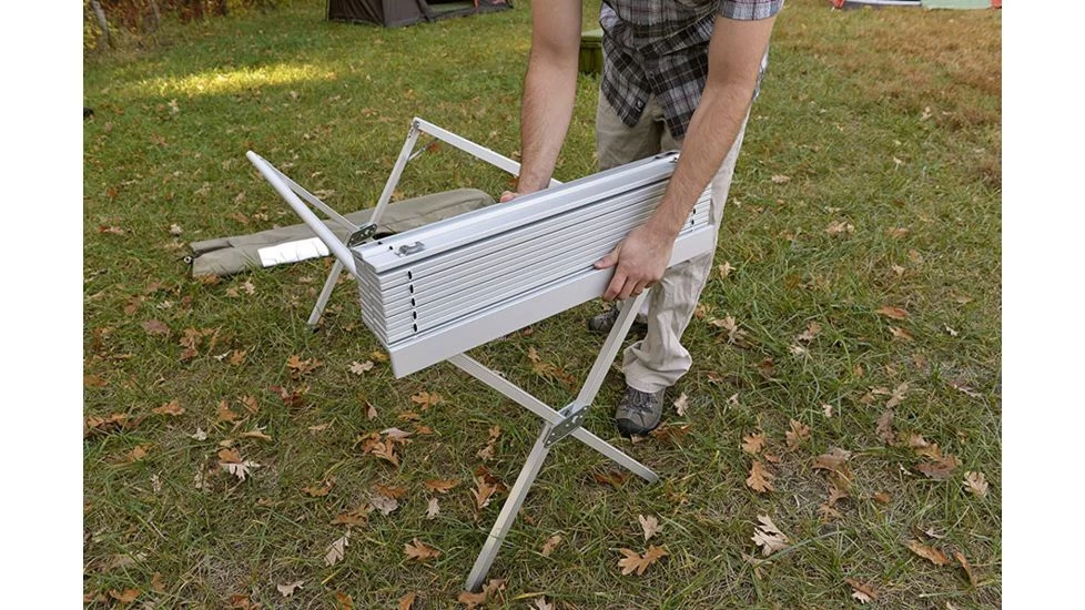 From dinner to playing games, the ALPS Mountaineering Dining Table provides a sturdy surface for your camping trips, picnics, and other outings. ALPS Mountaineering built this Camp Furniture with a anodized aluminum frame that offers lightweight ruggedness paired with premium resistance to corrosion for a lifetime of use. The ALPS Mountaineering Outdoor Dining Table quickly collapses and slides into the included carrying bag for convenient transportation and storage. This table is ergonomically designed with no interfering side supports which allows chairs to scooch up close while offering unlimited legroom, just be mindful of who’s sitting across from you! Take your outdoor events to the next level with the utility of this ALPS Mountaineering Regular Dining Table.![]()