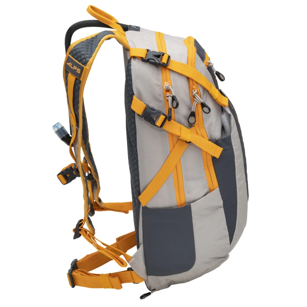 Cycling, running, hiking and climbing are all sports requiring different training, disciplines and equipment, but no matter your passion, there is one thing every athlete must have—quick and easy access to adequate amounts of water. Being without water can quickly become dangerous, and a well-designed hydration pack is the perfect solution. The array of hydration packs designs from ALPS Mountaineering makes carrying water easy and convenient! The Hydro Trail 15 comes equipped with a 3L ALPS hydration reservoir, but it is so much more than just a hydration pack. The pack features a large main compartment, a front organizer pocket, fleece-lined sunglass pocket and an expandable front stretch pocket for stowing a helmet. A 3D mesh suspension system, mesh shoulder straps and removable waist belt give the Hydro Trail 15 a close, comfortable fit to your body. Complete with reflective details, side compression and built-in rain cover the Hydro Trail 15 is the ultimate pack for hauling your most essential gear.